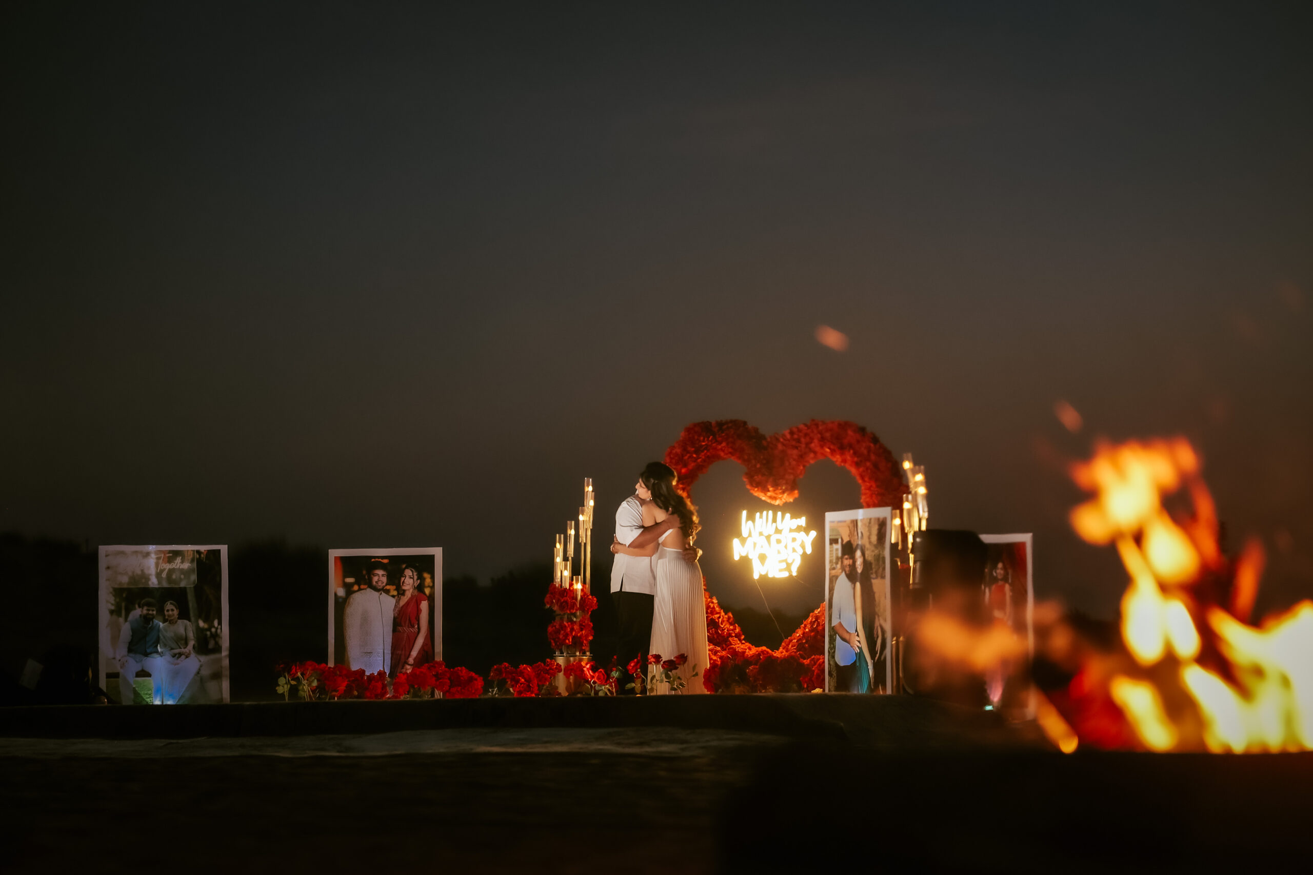We specialize in luxury desert proposals, creating breathtaking engagement moments set against golden dunes, open skies, and unforgettable sunsets in the UAE.